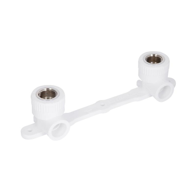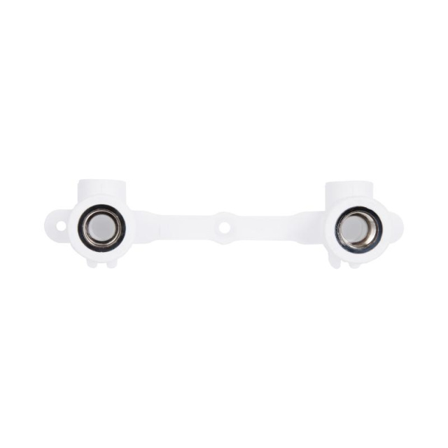 Монтажна планка PPR Blue Ocean "Білий" 20х1/2" ВР — комбінований виріб із поліпропілену з латунними вставками. Основне застосування — монтаж настінних змішувачів з підключенням до ППР-трубопроводів гарячої та холодної води. До труб із зовнішнім діаметром Ø20 мм таку деталь приєднують за допомогою поліфузного зварювання. Для під’єднання змішувача подвійний куточок забезпечений внутрішньою різьбою 1/2 дюйма. Отвори на планці призначені для виконання кріплення до стіни чи іншої поверхні.