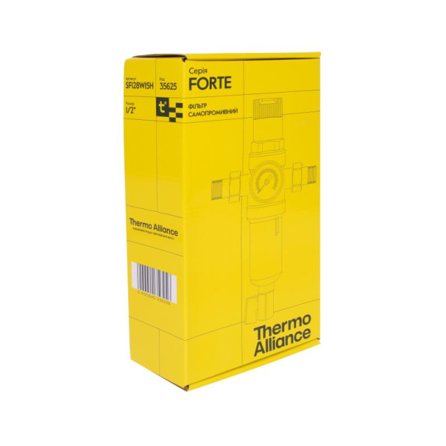 Захист сантехнічного та теплотехнічного обладнання від надлишкового динамічного та статичного тиску, від механічних домішок, які можуть бути у водопровідній воді, дуже важливий. Для виконання цих функцій розроблений фільтр самопромивний Thermo Alliance Forte 1/2" з редуктором для гарячої води. Фільтрувальна сітка — із неіржавної сталі, а корпус виробу, згіни американка — латунні. Виріб укомплектований манометром з діапазоном вимірювання 0÷10 бар.