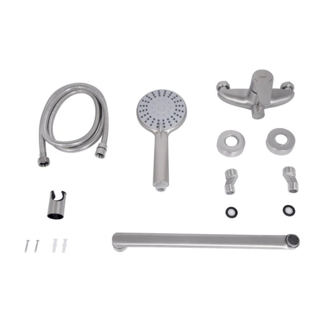 Змішувач для ванни Lidz (NKS) 09 35 005-1 виконаний з нержавіючої сталі, що гарантує тривалий термін експлуатації. Для включення подачі води досить підняти важіль і повернути його в необхідну сторону. Змішувач монтується на стіну над ванною за допомогою кріпильних елементів, які входять в комплект. Круглі розетки приховають похибки встановлення на обробці. Тримач лійки кріпиться також на стіну. Таким чином, ваші руки будуть вільні під час душових процедур.