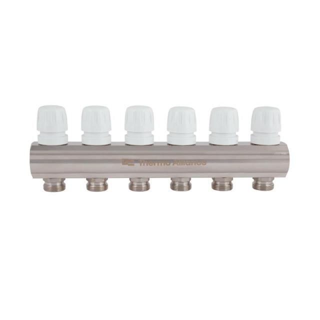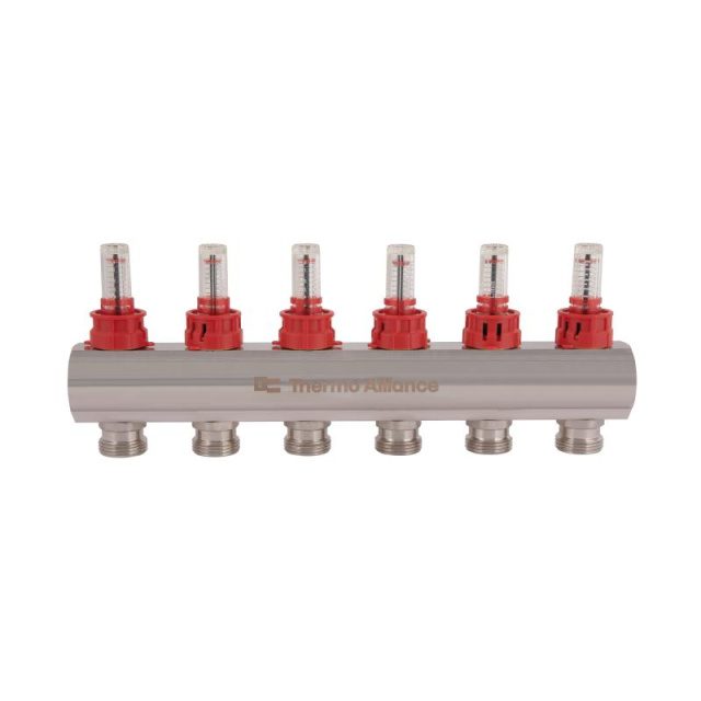 Колектор з витратомірами Thermo Alliance серії Standart 1”х6 SD235W6 використовується для розподілу води та контролю витрат у системах опалення та...