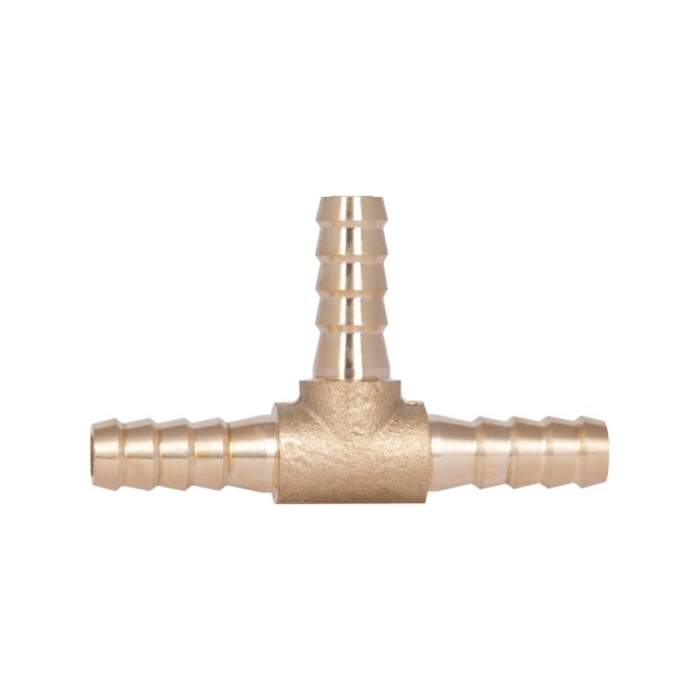 Латунний трійник Thermo Alliance Standart 8 SD4178 оснащений для з’єднання з гнучкими шлангами зовнішньою насічкою типу «ялинка». Розмір підключення — 8×8×8. Такий виріб можна використовувати в системах подачі води. Т-подібний рівнопрохідний фітинг для з’єднання шлангів широко застосовують при монтажі систем поливу та зрошення рослин у садах і городах.
