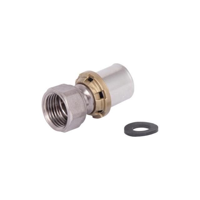 Прес-фітинг Icma 20х1/2" з оберт. гайкою Арт. 416 для металопластикової труби спроектований для застосування в¶системах водопостачання, опалення, і охолодження. Окремий прес на кожен діаметр металопластикової труби стискає гільзу з нержавіючої сталі, яка надійно фіксує трубу на фітингу.