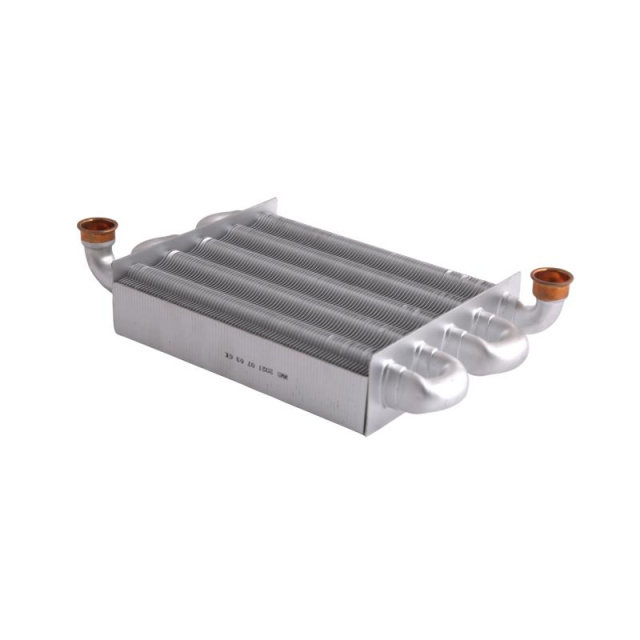 Теплообмінник призначений для передачі тепла, що виділяється при згорянні палива, до теплоносія системи опалення. Виготовляється із міді, має спеціальне захисне покриття.