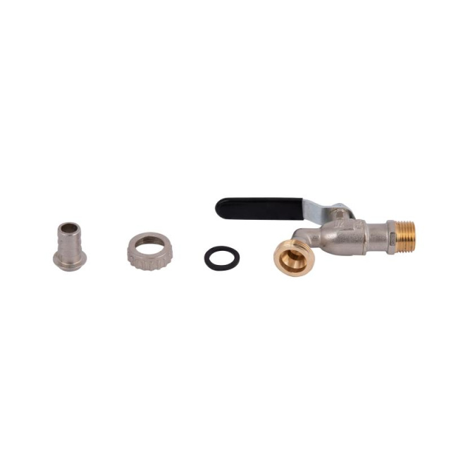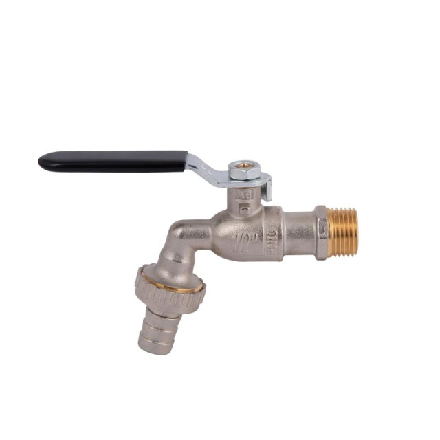 Садовий кульовий кран Icma №599 оснащений системою запобігання застою води та захистом від замерзання. Оснащений штуцером для підключення шланга діаметром 15 мм. Корпус виготовлений з нікельованої латуні, куля та керуючий шток - також латунні. Ущільнювачі виготовлені з EPDM із додаванням тефлону. Керування здійснюється за допомогою алюмінієвого важеля. Призначений для роботи з водою в температурному діапазоні від 5 до 90°C, витримує тиск до 10 бар.