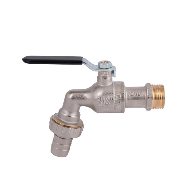 Кульовий садовий кран Icma 599 малий прохід із системою захисту від застою води та антизамерзання. З'єднання 3/4'' M x 1'' M з ніпелем для шлангу...