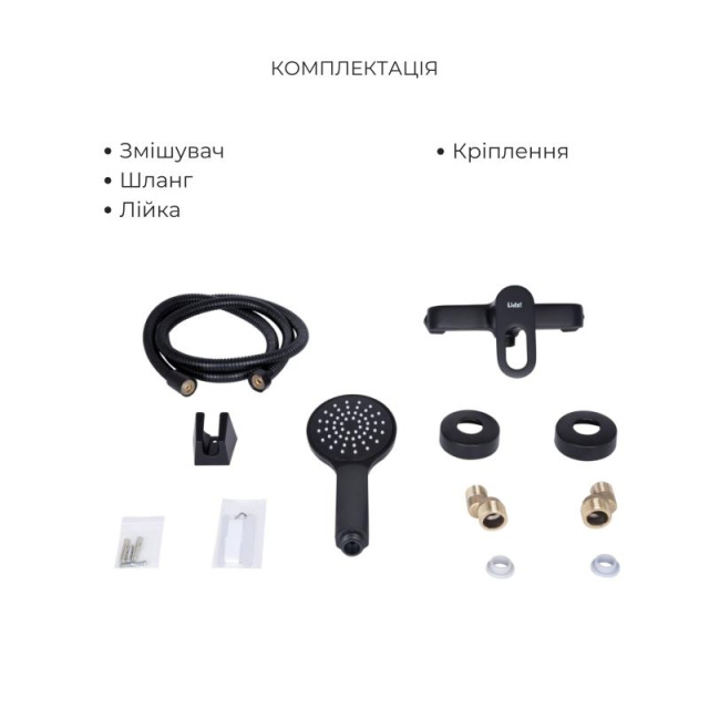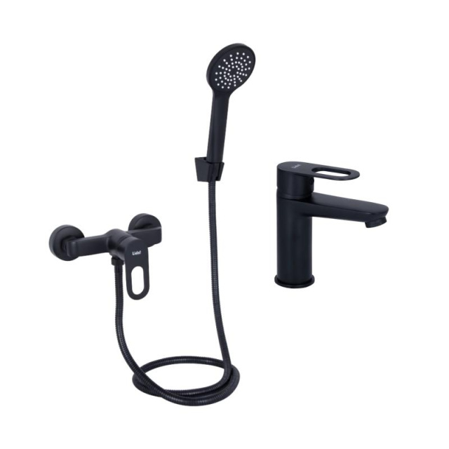 Комплект змішувачів Lidz Latwa Black: Змішувач для раковини LDLAT001BLA45418 + Змішувач для душу LDLAT010BLA45421