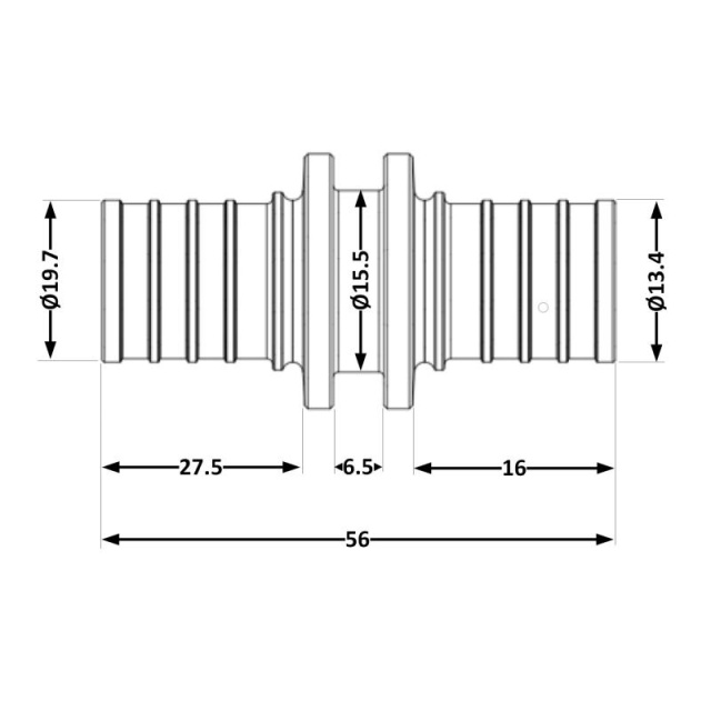 З'єднувач для аксіального фітинга (натяжної гільзи) Icma №1032 d16х2,2-25х3,5 851032GXBO05 призначений для з'єднання труб діаметром 16 мм та 25 мм з