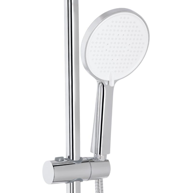 Душова система Qtap Evia QTEVI111CRM47583 — універсальне рішення для комфортних водних процедур. Система розрахована на трьох споживачів: верхній душ, ручний душ та вилив. Корпус виготовлений із міцних матеріалів з хромованим покриттям, що забезпечує довговічність і захист від корозії. Верхній душ забезпечує м’який і рівномірний розподіл води, а ручна лійка зручна для щоденного використання. Вбудований перемикач дозволяє легко змінювати режим подачі води, а одноважільне керування забезпечує плавне регулювання температури та напору. Настінний монтаж робить встановлення зручним і економить простір.