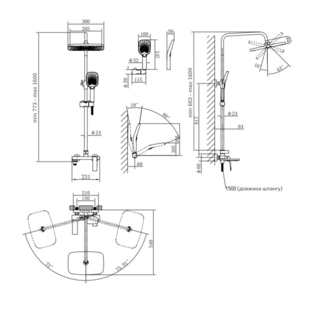 Душова система універсальна Qtap Tern на три споживача (з виливом) QTTER1112CRM47592 Chrome