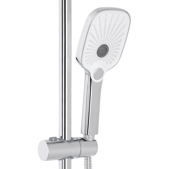Душова система Qtap Tern QTTER1112CRM47592 — універсальне рішення для комфортних водних процедур, розраховане на трьох споживачів: верхній душ, ручний душ та вилив . Корпус виготовлений із міцних матеріалів з хромованим покриттям, що забезпечує довговічність і захист від корозії. Верхній душ із широкою лійкою створює рівномірний потік води, а ручний душ із кількома режимами струменя робить використання більш зручним. Поворотний вилив і вбудований перемикач дозволяють легко змінювати режим подачі води. Настінний монтаж економить простір, а сучасний дизайн гармонійно вписується в інтер’єр ванної кімнати.