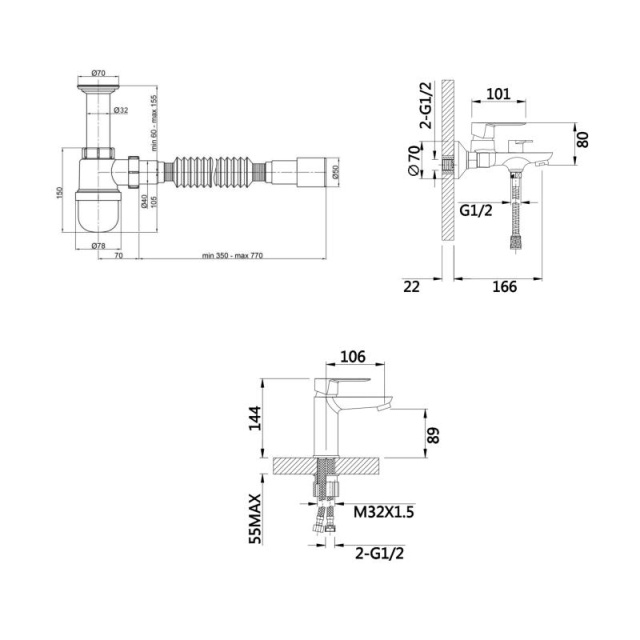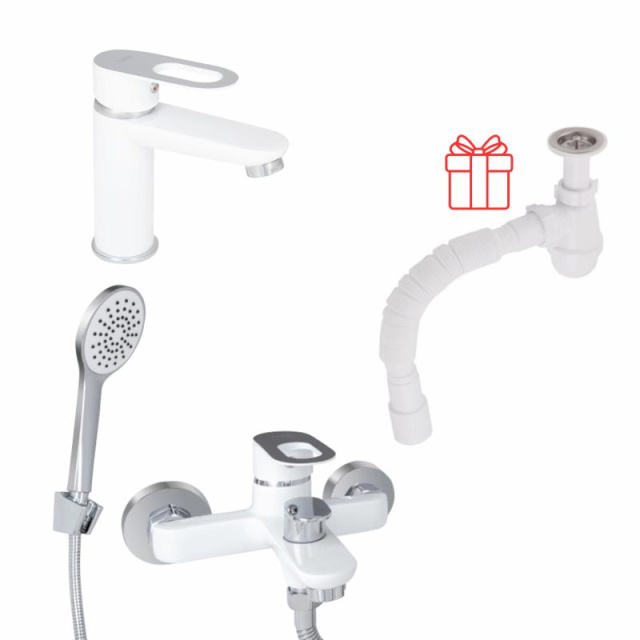 Стильний комплект у білому кольорі надасть ванній кімнаті свіжого та сучасного вигляду. Змішувач для раковини LDLAT001WHI45423 та модель для ванної кімнати LDLAT006WHI45424 поєднують у собі практичність, м'які форми та довговічні матеріали.