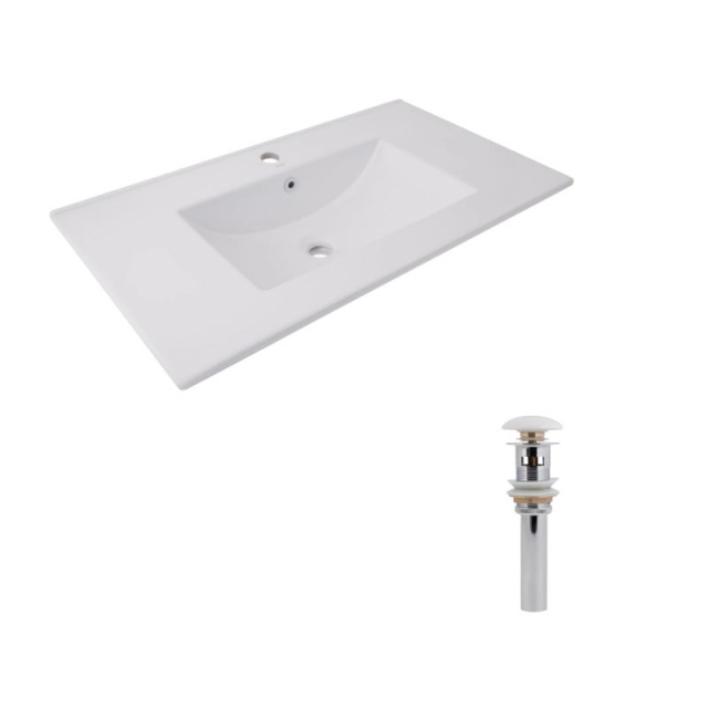 Комплект Albatross: Раковина врізна меблева 820x460x180 мм, White, прямокутна + Донний клапан Pop-up PU02O