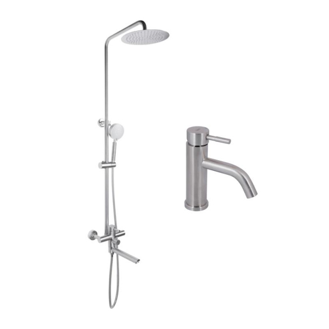 Комплект для душевої Душова система Aria 1033, Nickel (k35) на три споживача LDARI1033NKS46109 Lidz+Змішувач для раковини низький Aria 0011F, Nickel