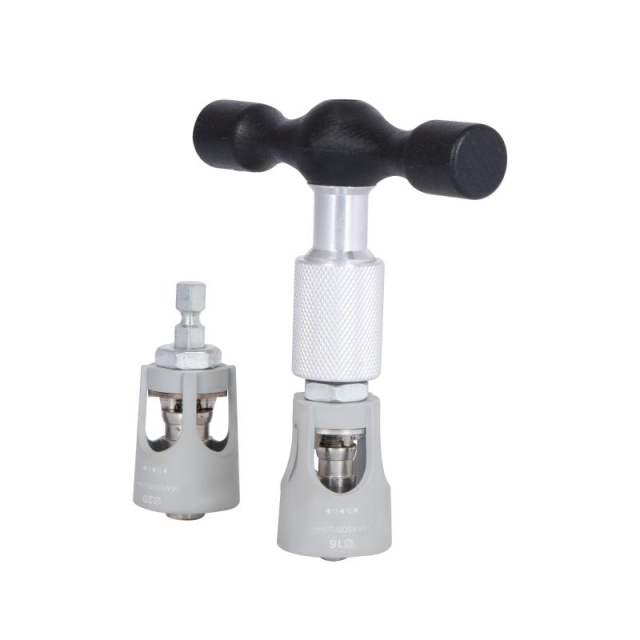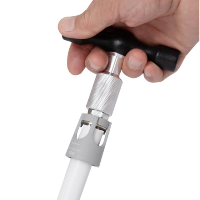 Універсальний набір для зняття фаски та калібрування труб Ø 16–20 Thermo Alliance STD?406 призначений для підготовки полімерних і металополімерних труб до з’єднання з аксіальним, пресс- чи обтискним фітингом. Ідеально знімає фаску з внутрішньої й зовнішньої сторони, обрізає нерівні зрізи та вирівнює овальну трубу для легкого й надійного з’єднання. Завдяки швидкоз’ємному механізму насадки змінюються легко й швидко. Сумісний з електроінструментом (шуруповерт). У комплекті - дві насадки: Ø16 мм і Ø 20 мм.