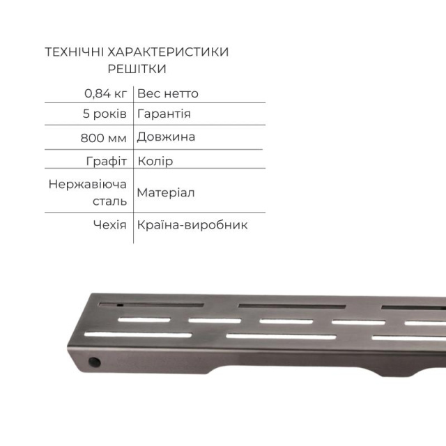 Комплект включає міцний корпус трапу та решітку. Сухий затвор забезпечує надійний захист від проникнення неприємних запахів із каналізації без використання водяного затвора. Ідеально підходить для душових кабін та ванних кімнат.