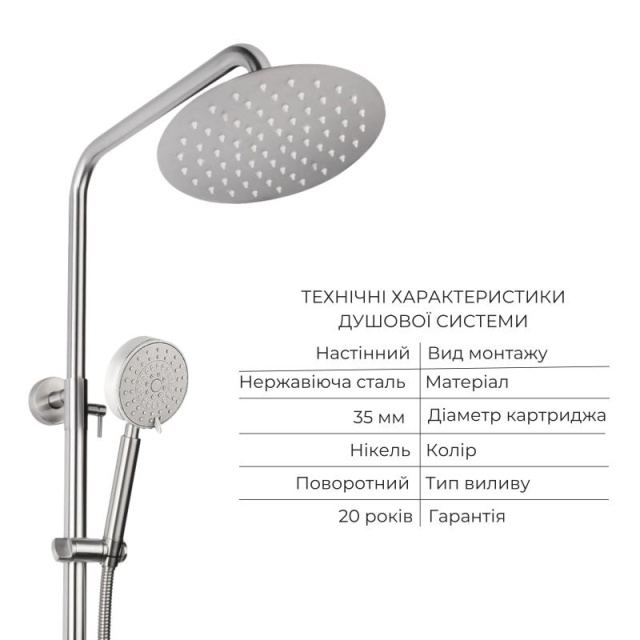 Акційний набір: Lidz Aria 0011F Змішувач для раковини (k35) Nickel + Lidz Aria 1031 Душова система на 3 споживача (з виливом) (k35) Nickel