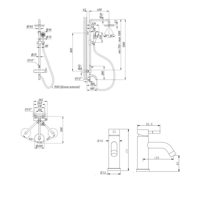 Практичне рішення для ванної кімнати: компактний змішувач для раковини та душова система із виливом на три споживачі. Обидва вироби виконані в...