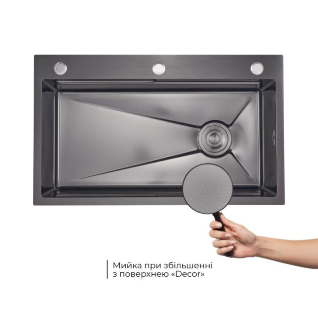 Інтегрована мийка Lidz Handmade H7545B виконана в ефектному покритті Black PVD із декоративною текстурою Honeycomb. Стійка до механічних пошкоджень