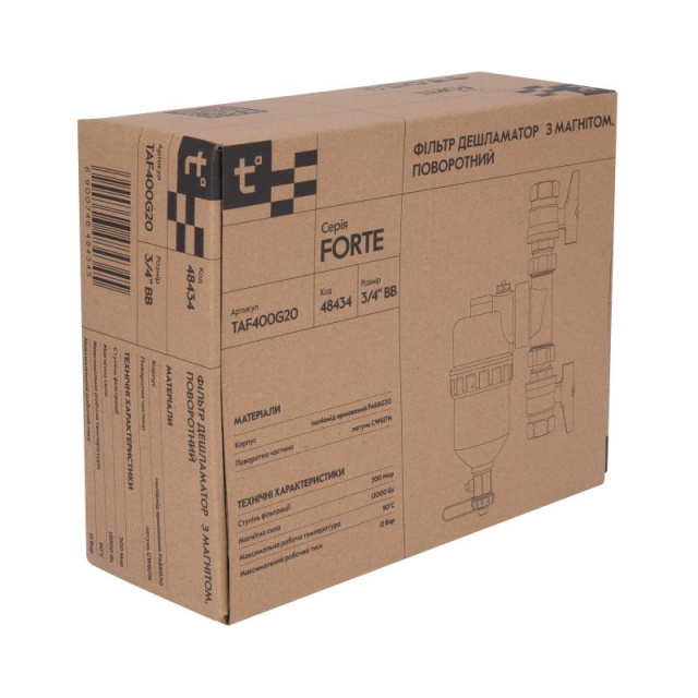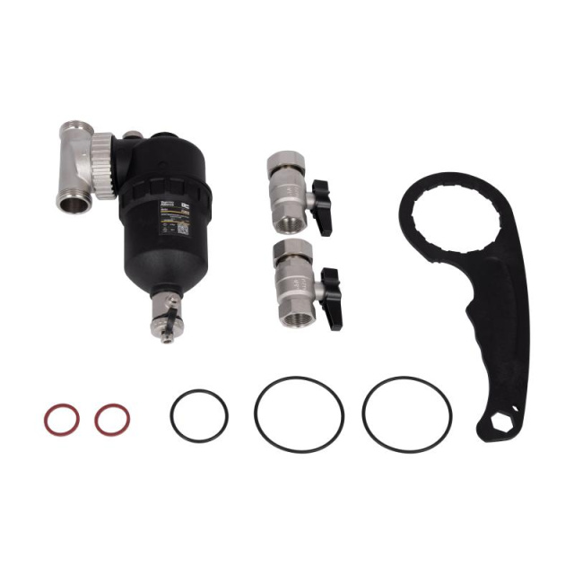 Фільтр-дешламатор Thermo Alliance Forte TAF400G20 забезпечує ефективне очищення теплоносія від шламу та металевих домішок. Вбудований магніт підвищує ефективність уловлювання частинок, а поворотна конструкція спрощує монтаж у будь-якому положенні. Корпус виготовлений із армованого поліаміду PA66G30, фільтрувальний елемент — з нержавіючої сталі, корпус дивертора та кульові крани — з латуні CW617N.